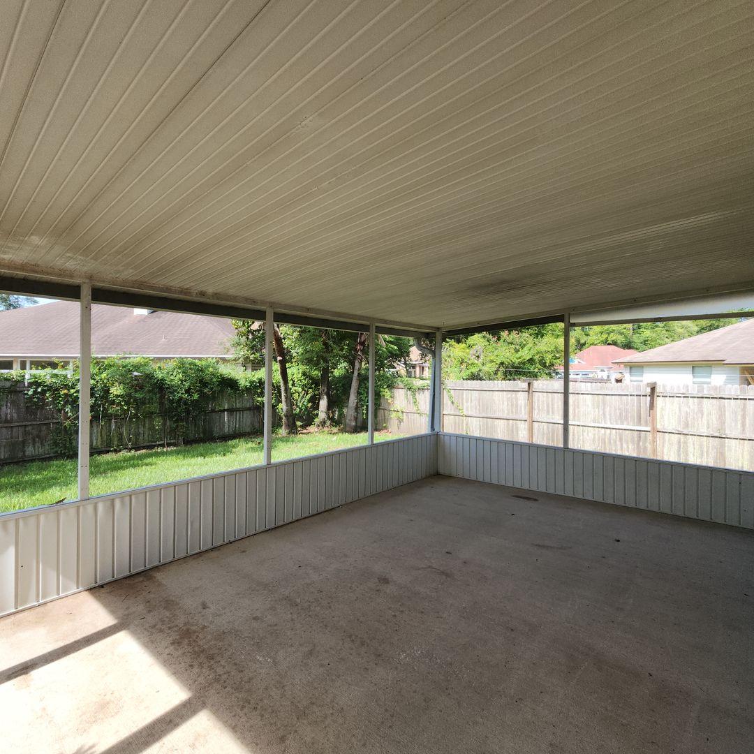A is a fully open living and dining area, a spacious kitchen with ample counter space, and a large pantry, ideal for entertaining. Nicely sized bedrooms with plenty of closet space. Outside, there is a large screened-in patio and a partially fenced-in yard. Use this outdoor space as you see fit—either as an outdoor living room or a play space.